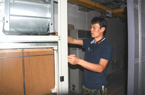 除了有一双善于发现问题的眼睛,邢峰昌也有一双能工巧匠一般的双手,夏季三伏天的时候,由于室外温度逐渐升高,导致局房空调工作负荷增大,尤其室外机长期工作在高温环境,散热风扇高速运转,耗电量和噪音也较大。面对这一难题,他反复观察和分析,凭着多年来积累的工作经验,大胆进行尝试。为降低能耗,同时保证空调正常运转,邢峰昌在室外机抽风口安装了小型喷头对散热风扇洒水降温,大大降低了散热风扇转速,在减少室外机工作噪音的同时,也降低了空调压缩机工作负荷,节省了空调能耗。与此同时为了保证机房大功率空调正常运转,邢峰昌还克服困难自制了遮阳棚,用来遮挡顶楼空调室外机,避免室外机在高温下过于暴晒,造成空调损坏,延长了空调的使用寿命。