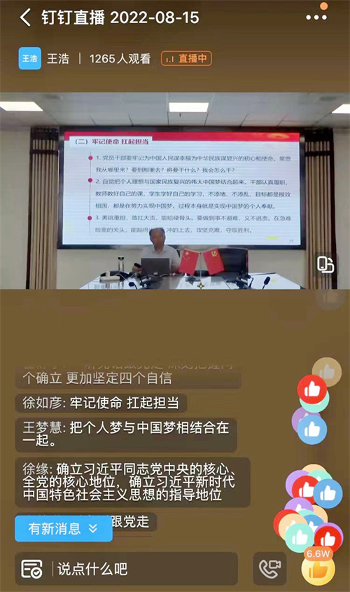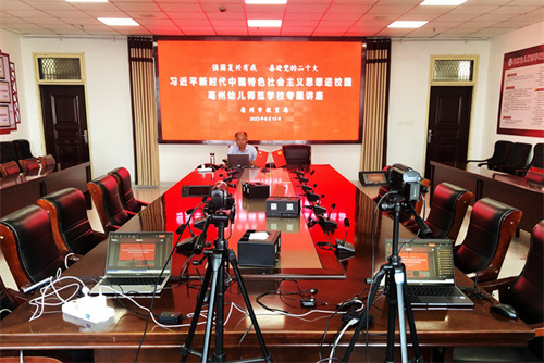 8月15日,亳州幼儿师范学校借助网络直播平台开展网上大宣讲活动,校党委副书记樊文华对全校师生进行习近平新时代中国特色社会主义思想进校园网上授课。