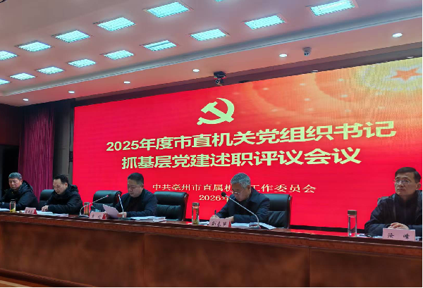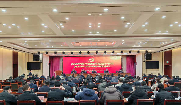 2月11日,2025年度市直机关党组织书记抓基层党建述职评议会议在市委党校图书馆二楼报告厅召开。市直工委书记戴飚主持会议,79家市直机关(企事业单位)党组织主要负责人和特别邀请的市党代表、市人大代表、市政协委员以及基层党员群众代表参加会议。市委组织部二级调研员刘春笋带队参加指导会议。