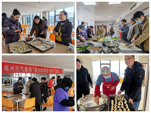 为庆祝中华传统元宵佳节,丰富气象职工节日文化生活。2月15日,亳州市气象局举办“我们的节日·元宵”活动,全局职工一起动手包饺子、煎水煎包、做特色菜,欢度佳节。