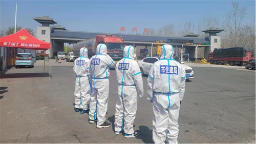 4月1日下午,市住建局李丰局长带队到值勤点看望慰问了一线同志,送去了防护服,对一线同志的辛苦付出和敬业精神给予了高度评价,市建管中心郭来运主任表示:疫情风险不解除,一线人员不撤离,抗疫保材两手抓,助力企业解难题,在市局的直接领导下,继续发扬团结协作,能打硬仗的作风,保证坚决完成任务,全力确保建材供应。